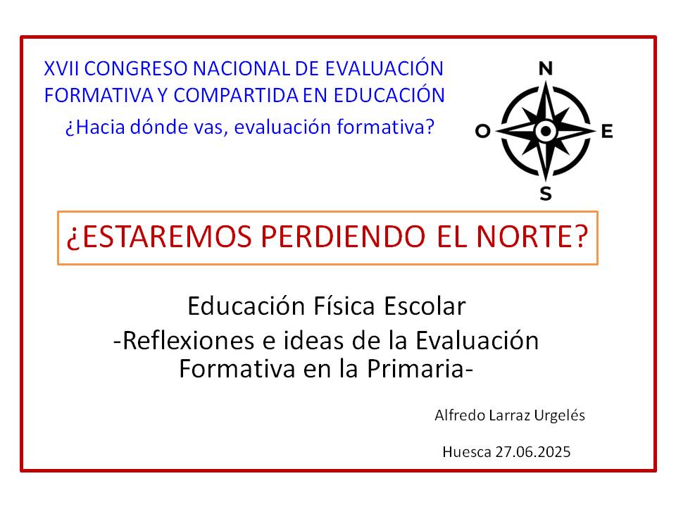 El pasado 27 de junio de 2025 presenté en Huesca (Facultad de CC de la Salud y del Deporte_Universidad de Zaragoza) unas reflexiones sobre la Evaluación Formativa en la EF escolar, con motivo del XVII CONGRESO NACIONAL DE EVALUACIÓN FORMATIVA Y COMPARTIDA EN EDUCACIÓN, cuyo título era: ¿Hacia dónde vas evaluación